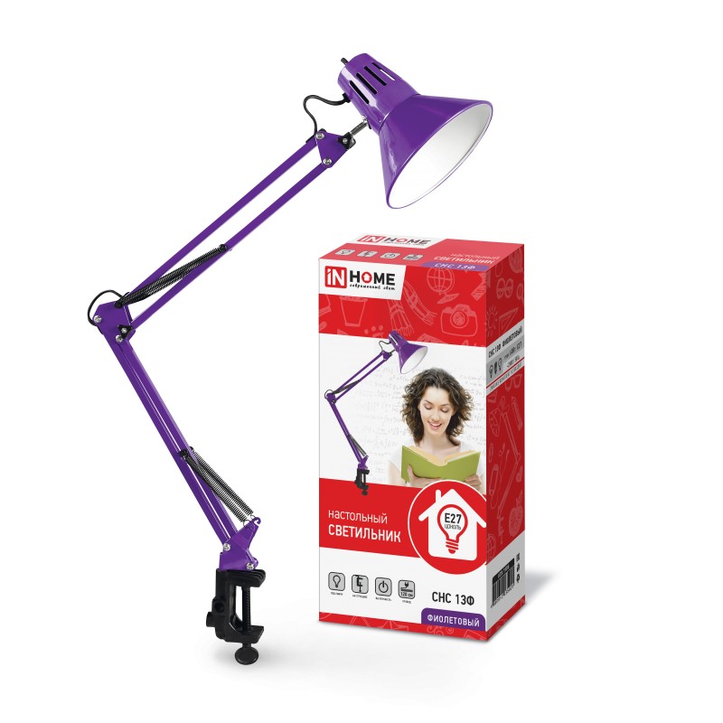 Настольный светильник на струбцине серии СНС-13 от ТМ IN HOME предназначен для дополнительного освещения рабочего пространства. Светильники под лампу СНС 13 имеют удобную конструкцию и могут регулироваться по высоте. Крепление на струбцине обеспечивает надежность фиксации при любом положении. Серия светильников СНС 13 представлена в широком разнообразии цветов: белый, черный, серебро, фиолетовый, синий, что позволяет использовать светильники в любом интерьере. Светильники используются с лампами мощностью до 60Вт с цоколем Е27.